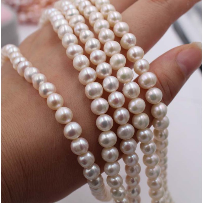 Nhà cửa & Đời sống > Dụng cụ nhà bếp > Dụng cụ pha trà, cà phê || Dây nguyên liệu hạt trai nước ngọt màu trắng gần tròn 7-8mm độ sáng 3ACòn hàng