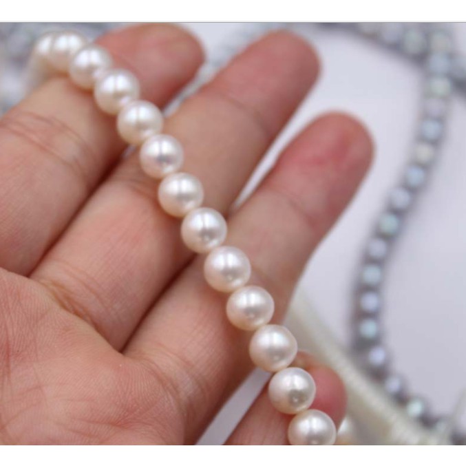 Giới thiệu Dây nguyên liệu hạt trai nước ngọt màu trắng gần tròn 7-8mm độ sáng 3A