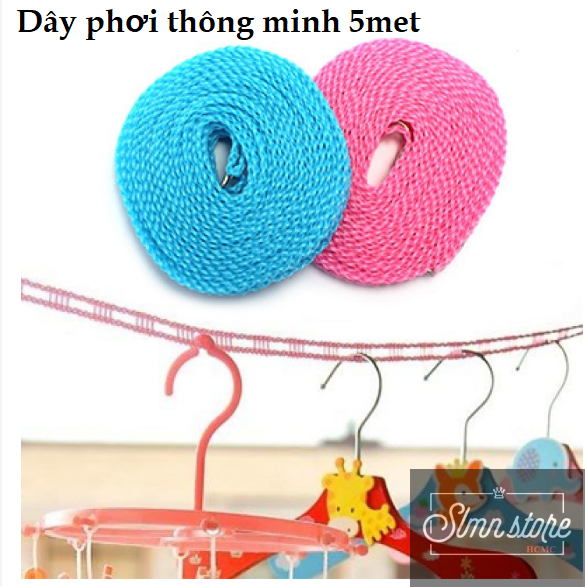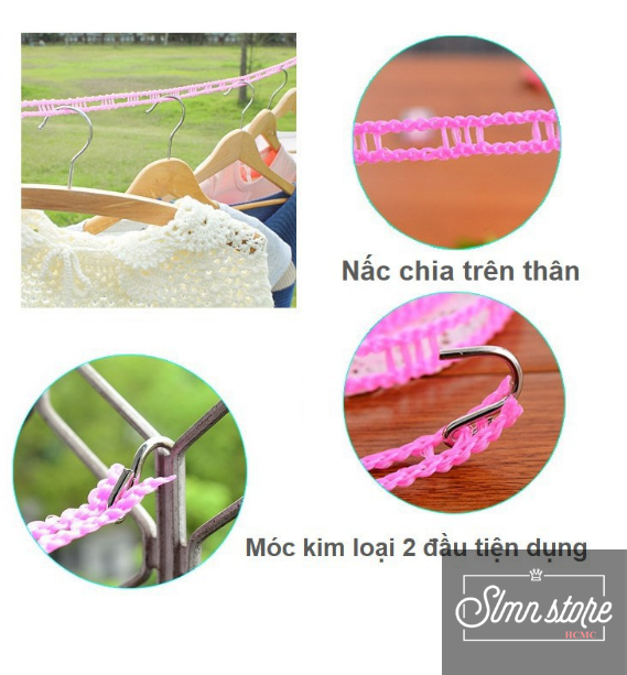 Giới thiệu Dây nhựa phơi đồ thông minh có lỗ chống trượt dài 5 mét, tiết kiệm không gian. SD1_DayPhoiDo