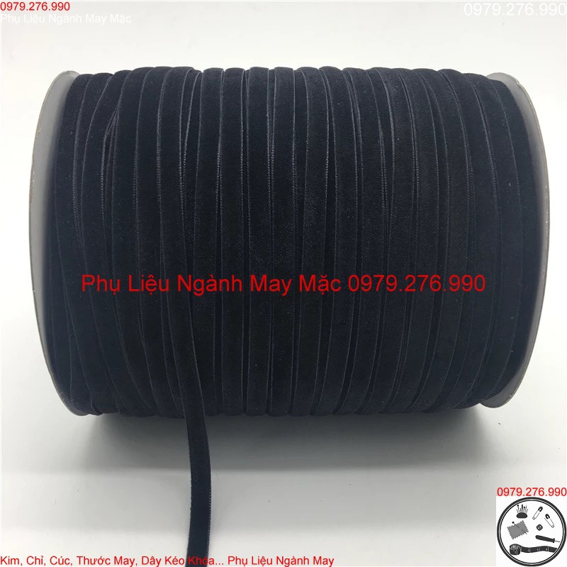 Dây nhung thường được dùng để làm nơ buộc trang trí quần, áo, váyChất liệu dây được làm bằng nhung, màu đen