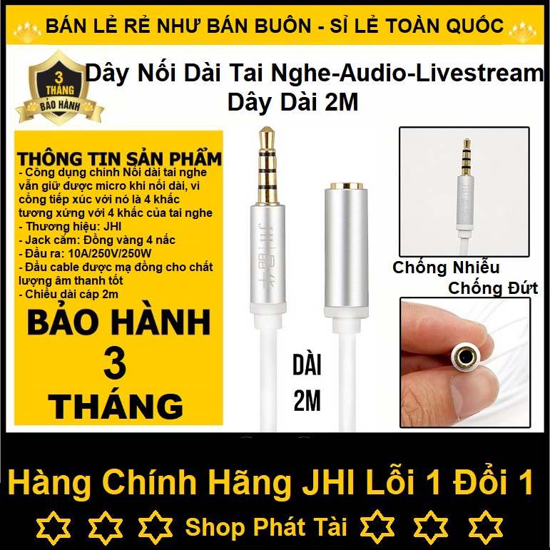 Giới thiệu Dây nối dài kết nối VIDEO / AUDIO / Livestream chuẩn 3.5 chính hãng JHI - Dài 2M Bảo Hành Lỗi 1 Đổi 1