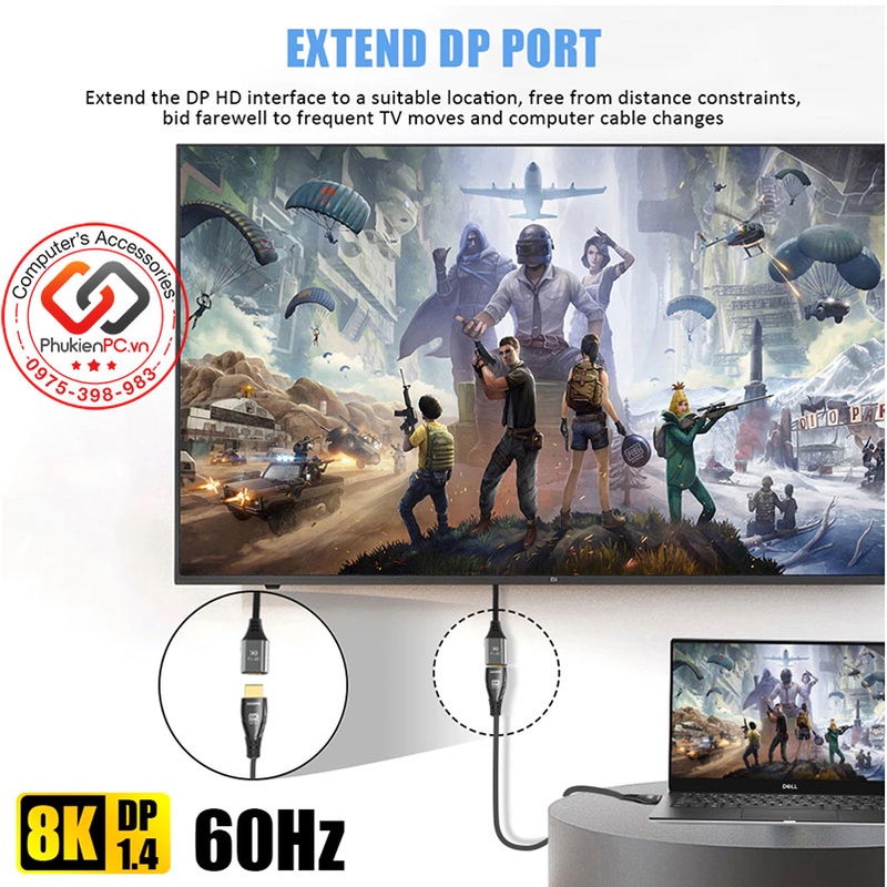 Hầu hết card VGA chơi game, card VGA đồ hoạ dựng phim đều nâng cấp lên Displayport 1.4 (DP 1.4). Màn hình 2K, 4K hiện nay tích hợp Displayport 1.4. Dây cáp Displayport 1.4 chuyên dùng nối Motherboard PC, Card đồ hoạ ra màn hình. Hỗ trợ độ phân giải 8K@60Hz-7680×4320, 4K@144Hz, 2K@165Hz, 1080P@240hz…