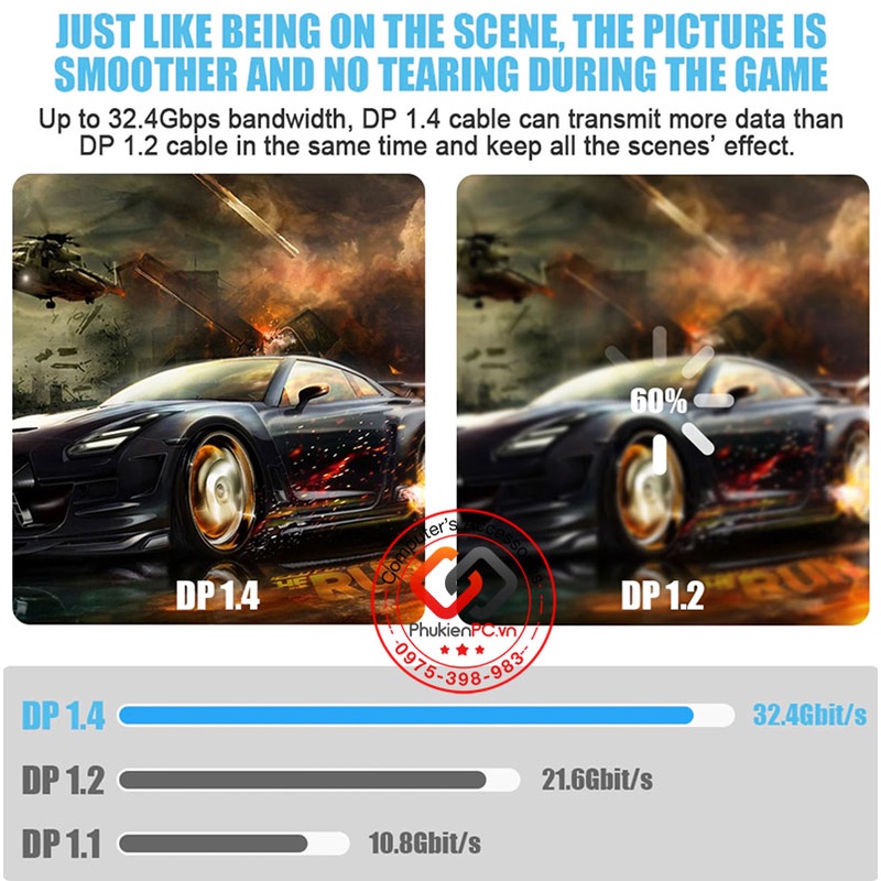 Băng thông dây DP 1.4 đạt 32.4 Gb/s