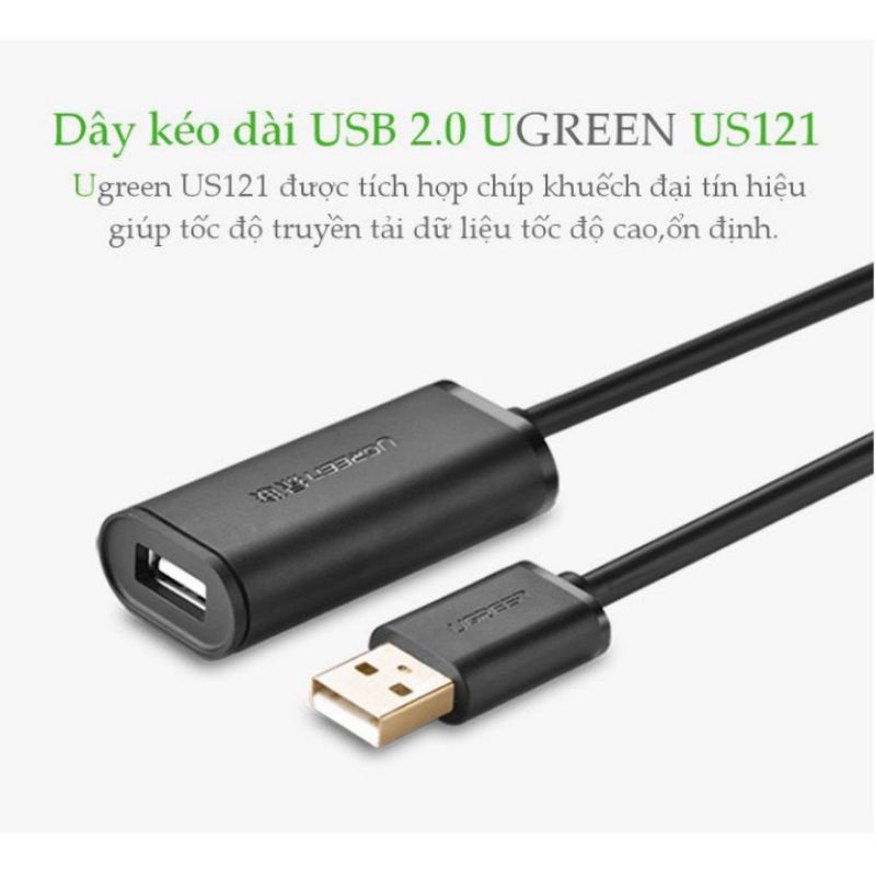 Dây nối dài USB 2.0 Active có Chíp khuếch đại Ugreen US121 dài từ 15m đến 30m - Hàng Chính Hãng