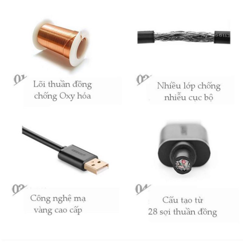 Cáp USB 2.0 Extension Ugreen 10319 được sản xuất bằng chất liệu tốt nhất với lõi đồng nguyên chất 100%, các đầu Jack cắm mạ vàng. 24K, tích hợp chipset khuếch đại tín hiệu giúp thiết bị có khả năng dẫn truyền tín hiệu ở cự ly xa cực kỳ ổn định và nhanh chóng.