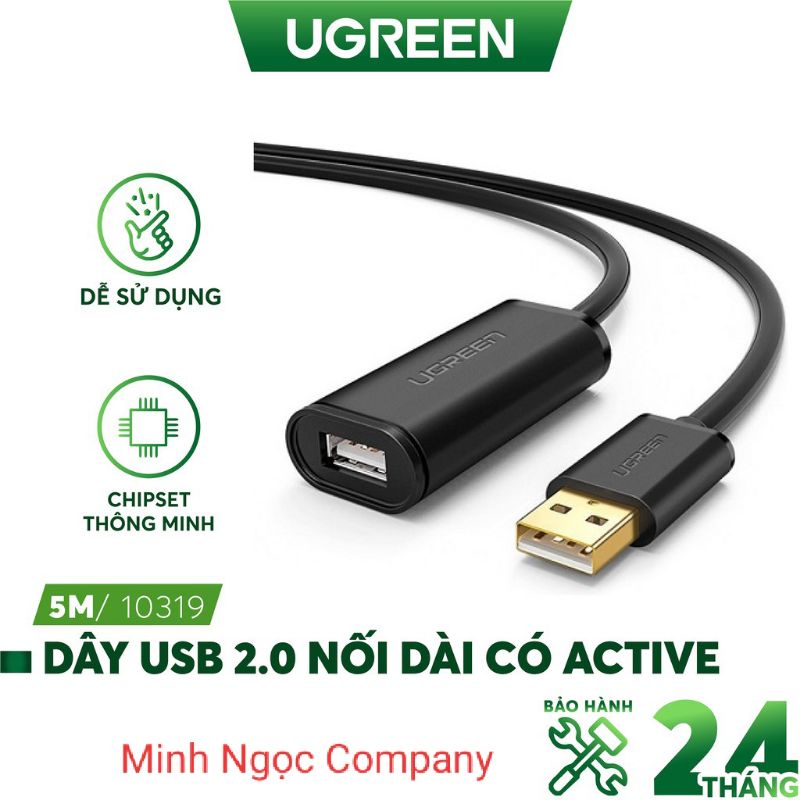 Cáp Nối Dài USB 2.0 5M Ugreen 10319 Có Chip Khuếch Đại Cao Cấp- Bảo hành chính hãng 18 thángCáp USB 2.0 nối dài 5M Ugreen 10319 là sợi cáp cao cấp chính hãng cung cấp giải pháp hoàn hảo để nối dài cổng USB 2.0 từ máy tính, laptop, đầu ghi hình camera... của bạn thêm chiều dài 5M dùng để kết nối các thiết bị ngoại vi như chuột, bàn phím, máy in, máy quét... với tín hiệu được truyền tải tốt nhất.