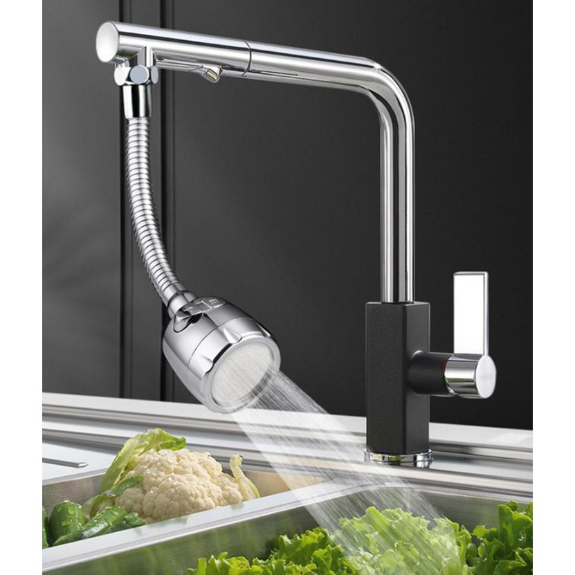 👉 Vòi bồn rửa thường lắp cố định gây khó cho việc rửa và vệ sinh, vì vậy gắn dây đầu vòi bồn rửa có thể xoay các hướng