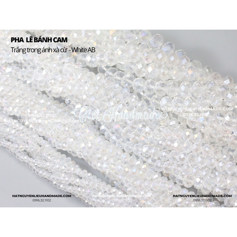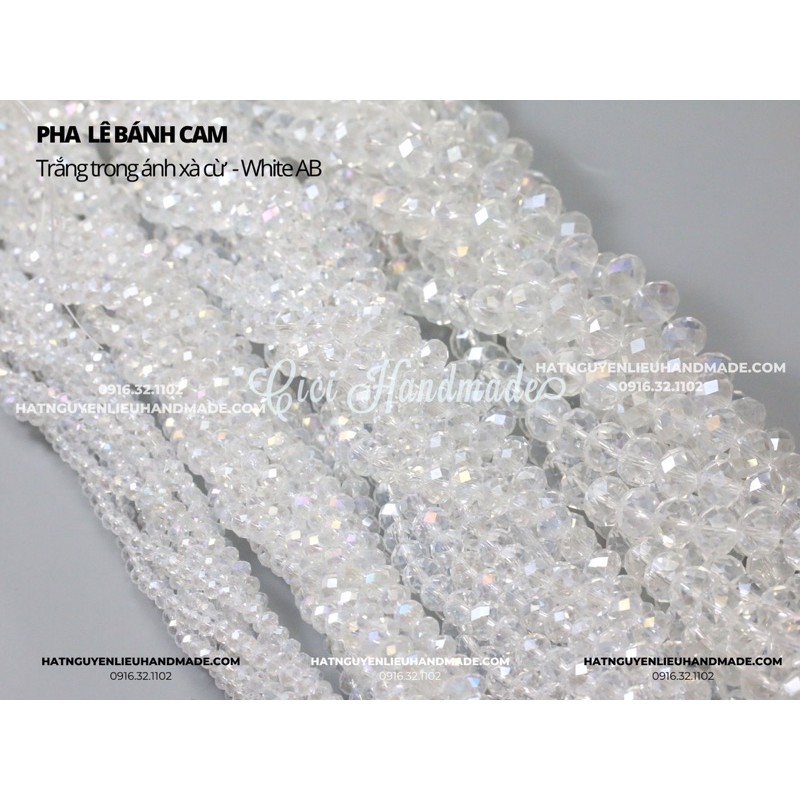 Dây pha lê bánh cam nhiều cỡ màu trắng trong ánh xà Cici Handmade nguyên liệu đính kết