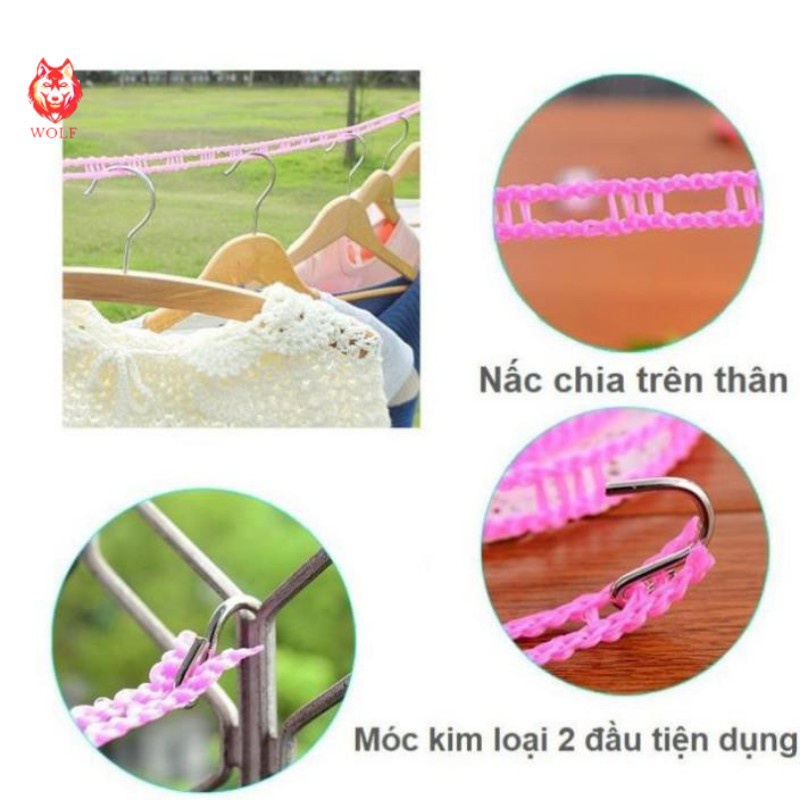 DÂY PHƠI ĐỒ, DÂY PHƠI QUẦN ÁO THÔNG MINH CÓ LỖ MÓC LOẠI 3MGiặt giũ, phơi quần áo là công việc quen thuộc của các bà nội trợ. Công việc tưởng chừng đơn giản này cũng thường gặp phải những trở ngại như: dây phơi bị đứt do không chắc chắn, gió thổi khiến quần áo bị xô vào gần nhau khiến chúng lâu khô và có mùi khó chịu. Tất cả vấn đề trên sẽ được giải quyết với những chiếc dây phơi đa năng tiện dụng đang rất được ưa chuộng hiện nay. Sản phẩm được thiết kế thông minh với kiểu dáng đẹp và gọn nhẹ.