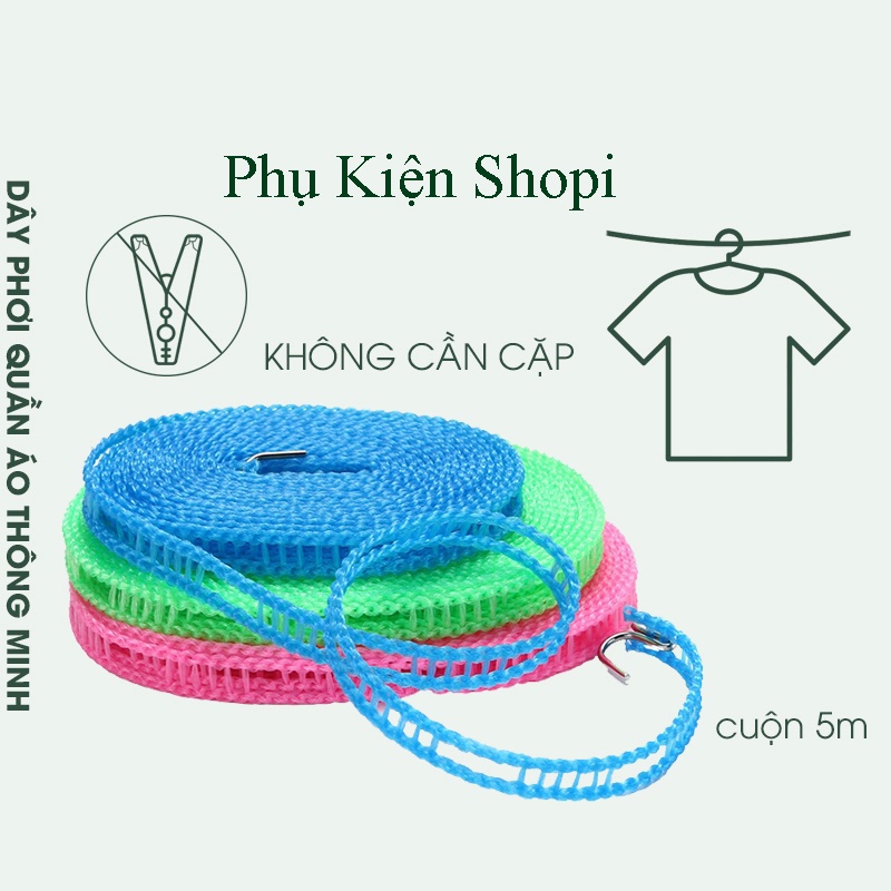Dây phơi đồ thông minh tiện lợi dài 5m - Dây treo quần áo không cần kẹp