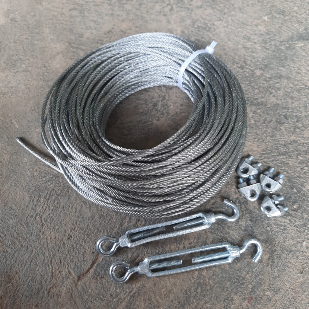 Hướng dẫn lắp đặt: Dùng khóa để khóa 2 đầu dây cáp, dùng tăng đơ để tăng độ căng của dây (vui lòng xem video để biết cách lắp đặt)
