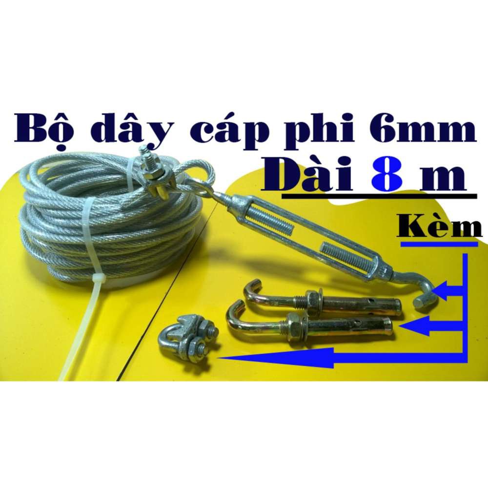 Dây phơi quần áo cáp bọc nhựa phi 6mm dài 10m + kèm 2 khoá cáp; 2 nở sắt móc 10mm; 01 tăng đơ