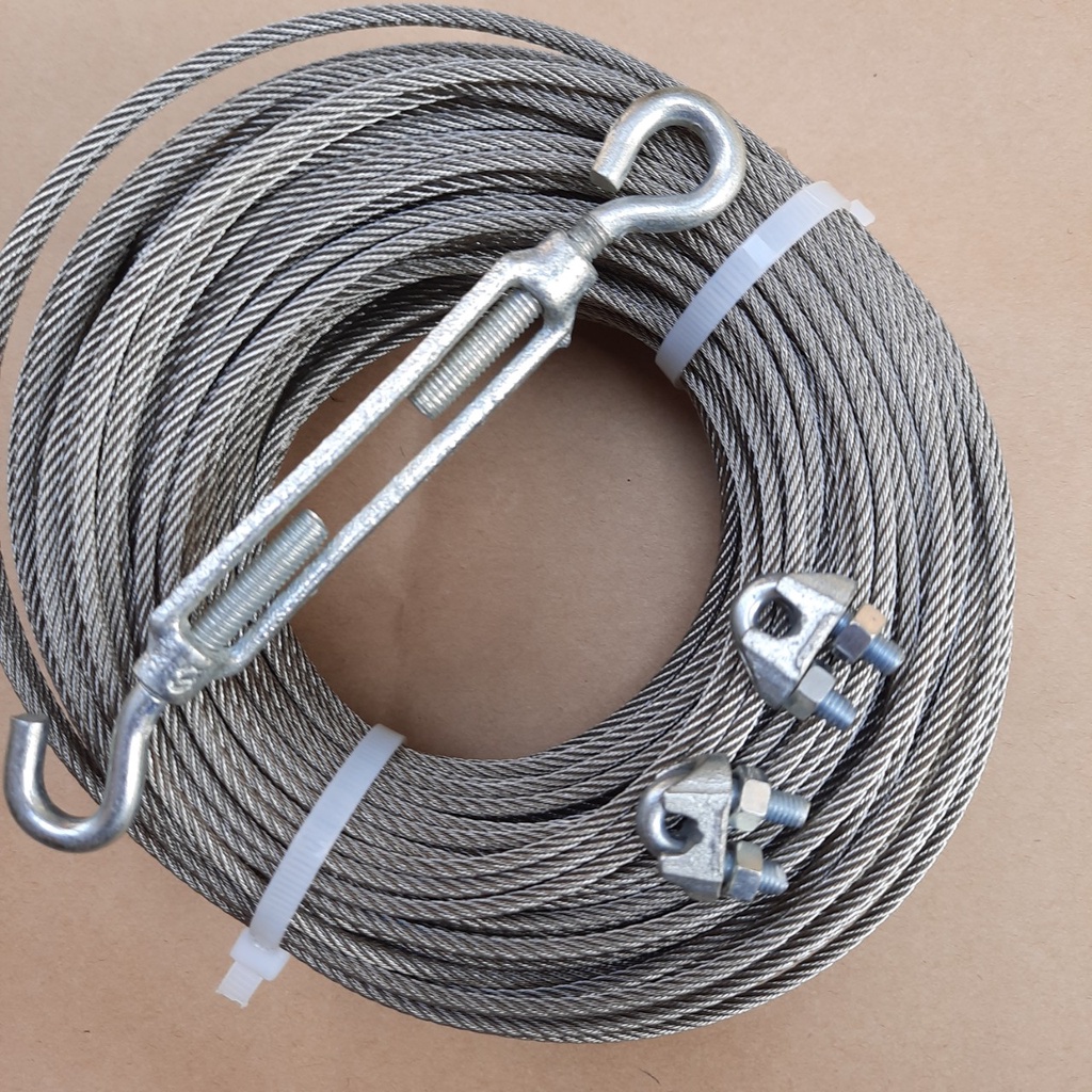 Hướng dẫn lắp đặt: Dùng khóa để khóa 2 đầu dây cáp, dùng tăng đơ để tăng độ căng của dây (vui lòng xem video để biết cách lắp đặt)
