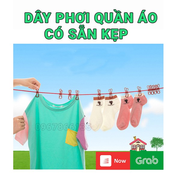 Dây phơi quần áo có sẵn kẹp tiện ích/ Dây phơi có móc kẹp chống gió/ dây phơi quần áo thông minh