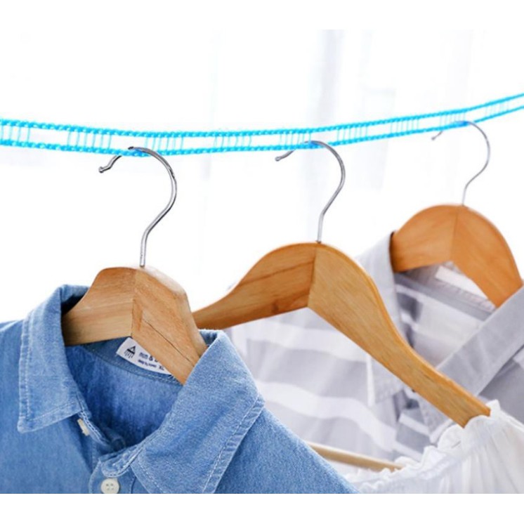 - Dây phơi quần áo thông minh giúp cố định các móc quần áo khi phơi tránh bị gió thổi dồn gây ẩm ướt và lâu khô.
