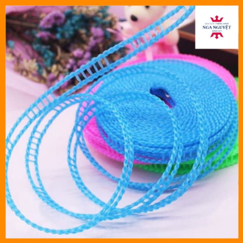 Có các ô nhỏ ngay trên thân dây; dây phơi này sẽ cố định được các móc áo không bị xô khi phơi ngoài trời.Chất liệu dây cước nhựa cực kỳ bền chắc và dẻo dai; có thể chịu được mọi loại thời tiết.
