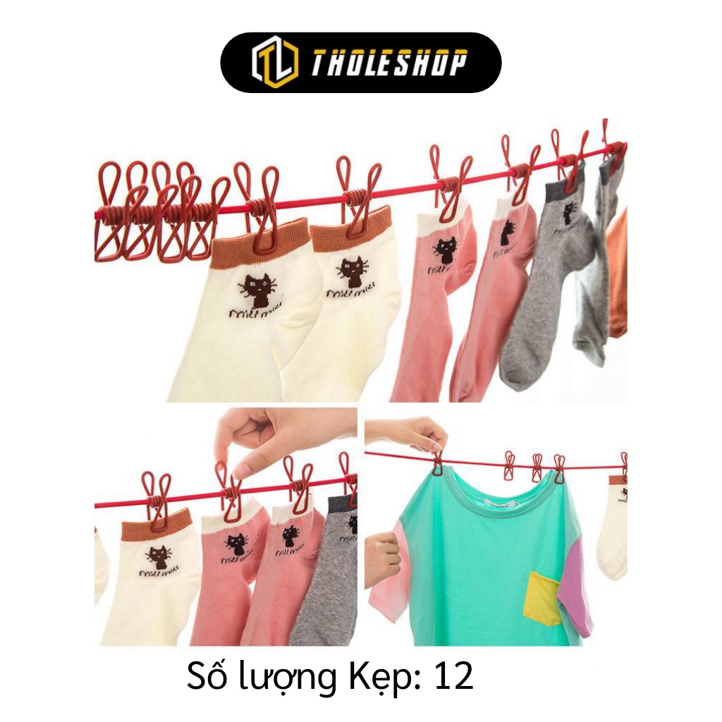 Dây Phơi Quần Áo - Dây Phơi Kẹp Sắt Có Móc Thông Minh, Tiện Lợi Treo Vớ, Đồ Trẻ Em 4138