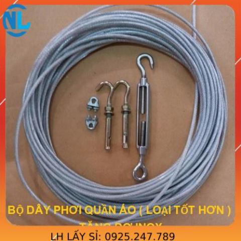 + Bộ dài 17m phi 5mm kèm 2 nở 10, 2 khóa cáp, 1 tăng đơ INOX số 8 giá 195.000đ/ bộ