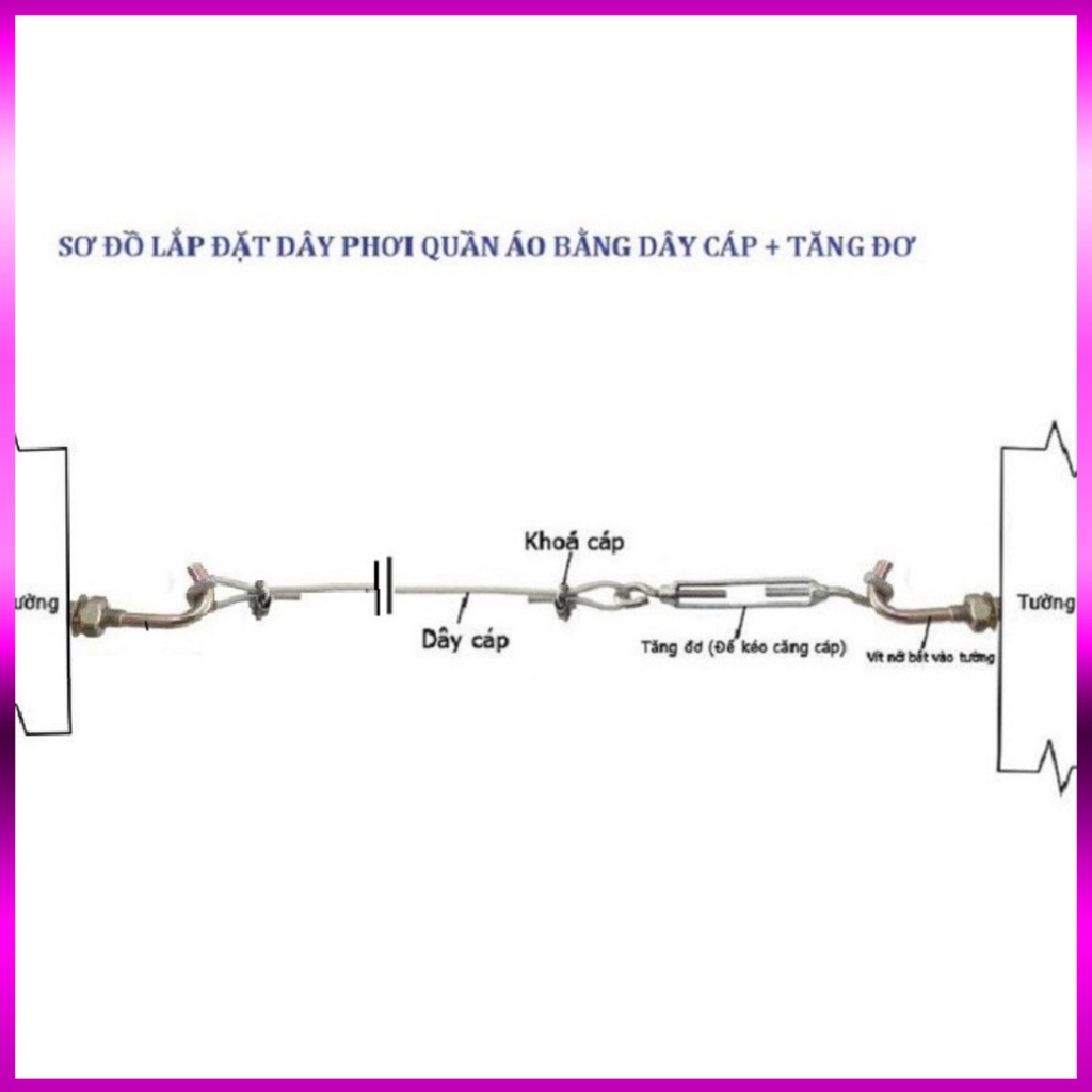 + Bộ dây phơi dài 3m kèm 2 nở 10, 2 khóa cáp, 1 tăng đơ thép số 8 giá 70.000đ/ bộ