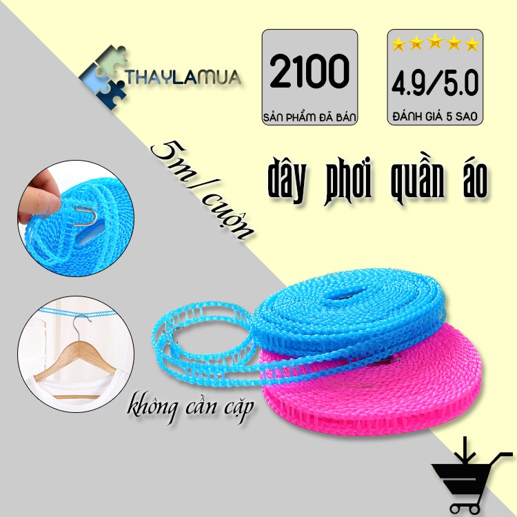 Dây phơi quần áo, phơi đồ thông minh chống bay không cần cặp - cuộn 5m ...bkm shop