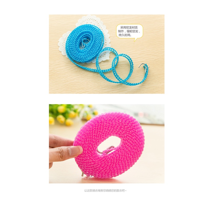 Dây Phơi Quần Áo Thông Minh 3M/5M Không Cần CặpGiặt giũ, phơi quần áo là công việc quen thuộc của các bà nội trợ. Công việc tưởng chừng đơn giản này cũng thường gặp phải những trở ngại như: dây phơi bị đứt do không chắc chắn, gió thổi khiến quần áo bị xô vào gần nhau khiến chúng lâu khô và có mùi khó chịu..