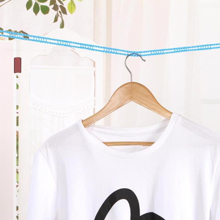 - Dây phơi quần áo thông minh giúp cố định các móc quần áo khi phơi tránh bị gió thổi dồn gây ẩm ướt và lâu khô.