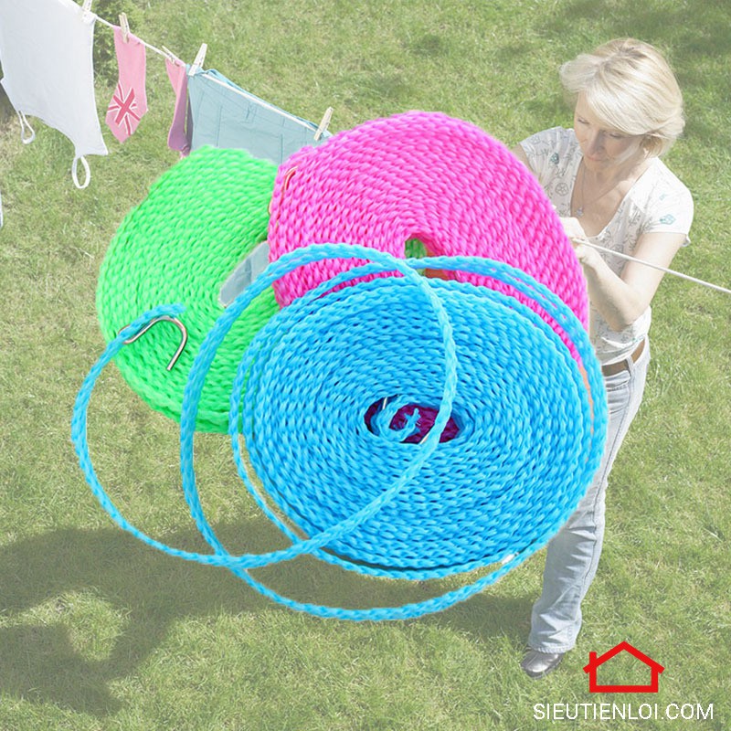 - Chất liệu dây treo quần áo bằng cước nhựa cực kỳ bền chắc và dẻo dai, có thể chịu được mọi điều kiện thời tiết.