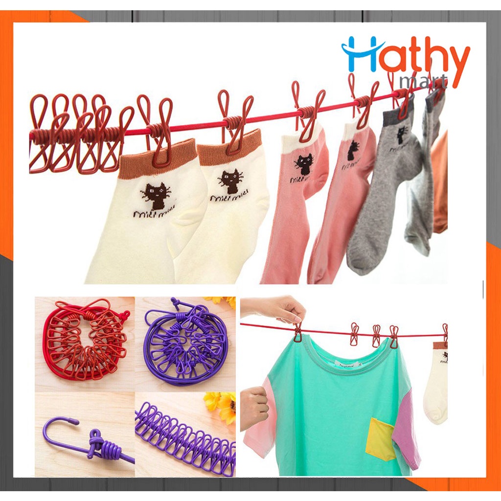 Dây phơi quần áo thông minh kèm 12 móc treo giúp bạn treo phơi quần áo, chống bay quần áo kể cả khi bão gió to nhé.🔺 Ưu điểm nổi bật: