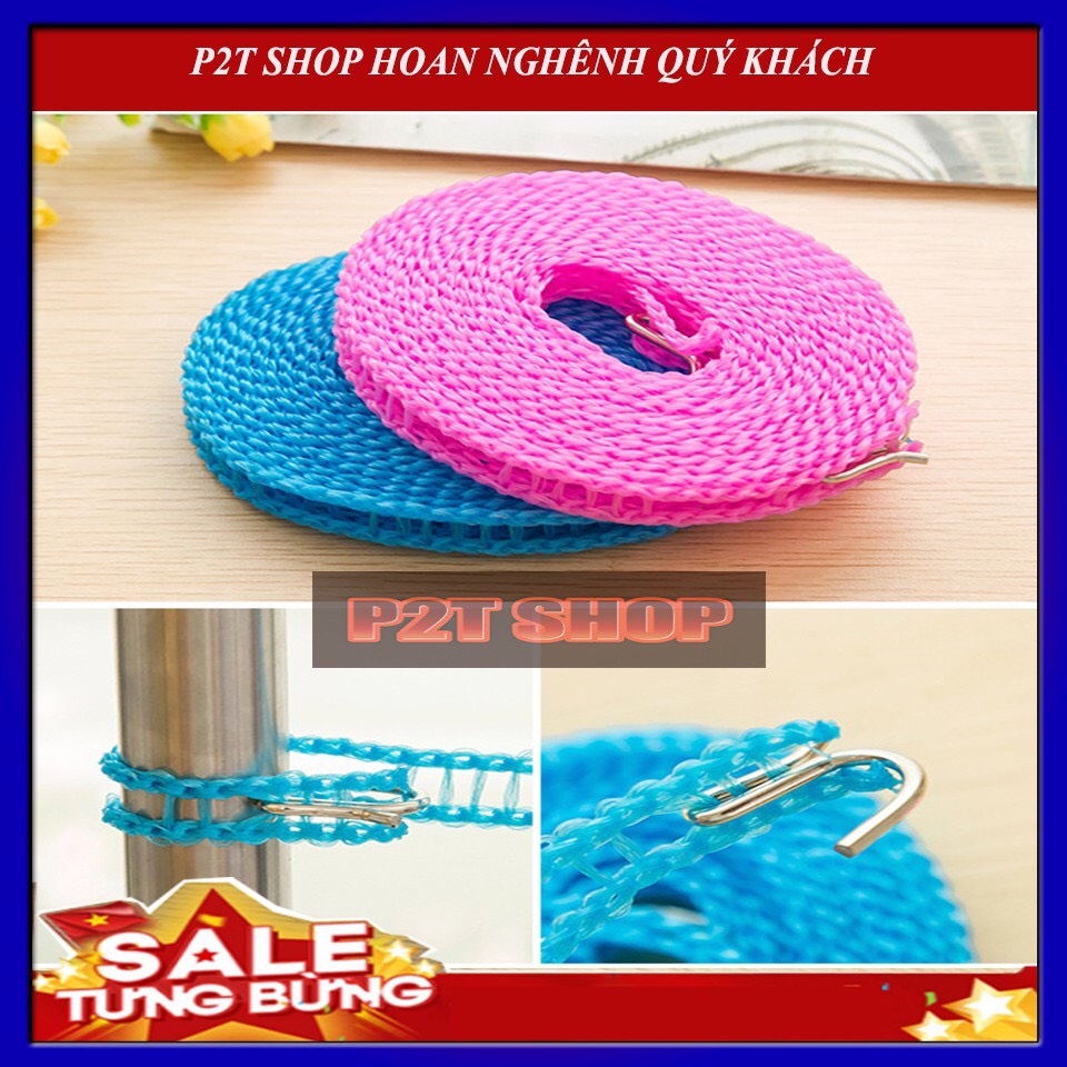 📌 Mỗi dây phơi đều có gắn 2 móc treo bằng inox giúp dễ dàng treo dây phơi.