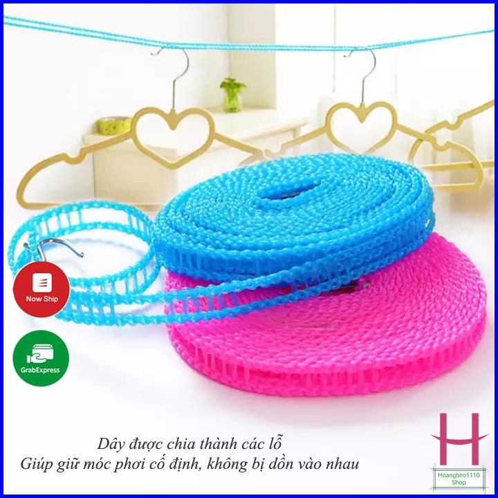 • Dây Phơi Quần Áo Thông Minh giúp bạn phơi áo quần thuận tiện , dây được chjia thành các lỗ nhỏ giúp giữ móc phơi cố định, không bị dồn vào nhau khi có gió
