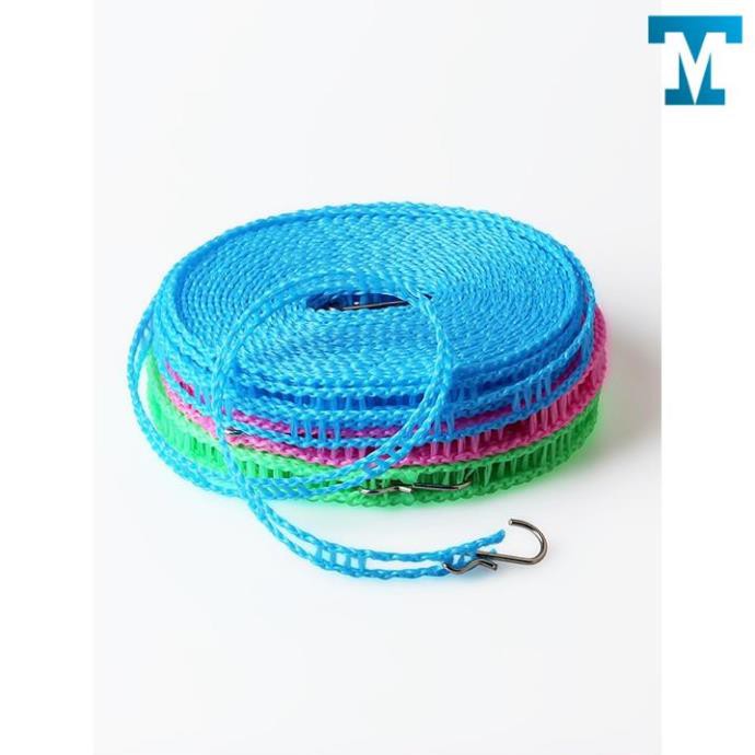 - Bộ sản phẩm bao gồm 01 dây phơi, dây dài 5 m, có thiết kế móc treo thuận tiện và các ô nhỏ cố định móc treo quần áo không bị xô.