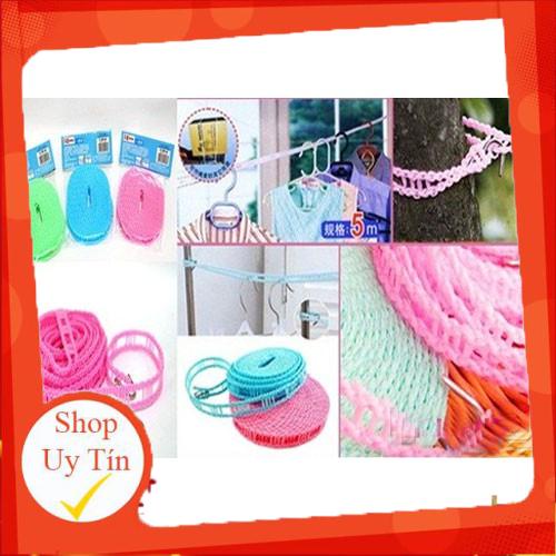 Hiện nay việc giặt quần áo không còn là nỗi cực nhọc của các bà nội trợ nữa vì đã có máy giặt, các loại bột giặt, tẩy với đủ thứ tính năng, đáp ứng hầu hết các yêu cầu giặt tẩy. Tuy có máy giặt nào, bột giặt nào thì người ta cũng vẫn phải phơi quần áo bằng tay như thời nguyên thủy vậy.Việc sử dụng dây phơi đồ là không thể bỏ qua rồi phải không nào, giúp các bạn giữ quần áo không bị xô lệch do gió và giúp đồ nhanh khô, luôn thơm tho và tránh được ẩm mốc. Chiếc dây phơi được thiết kế với chiều dài 5 mét, rất dễ dàng trong việc cài đặt cũng như sử dụng.