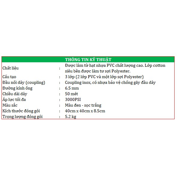 Dây phun áp lực dùng cho máy bơm xịt rửa cao áp hiệu KENTA 6.5mm x 50m| Công nghệ GERMANY | Bảo hành 12 thángTHÔNG TIN CHUNG
