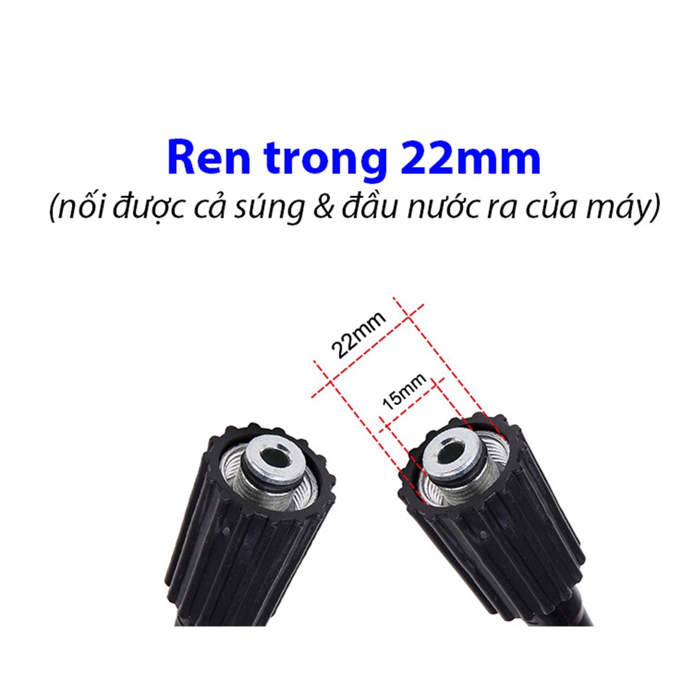 Dây phun xịt cao áp Ergen, cuộn dây áp lực nối dài 15m, dùng cho các dòng máy rửa xe ren 22mm