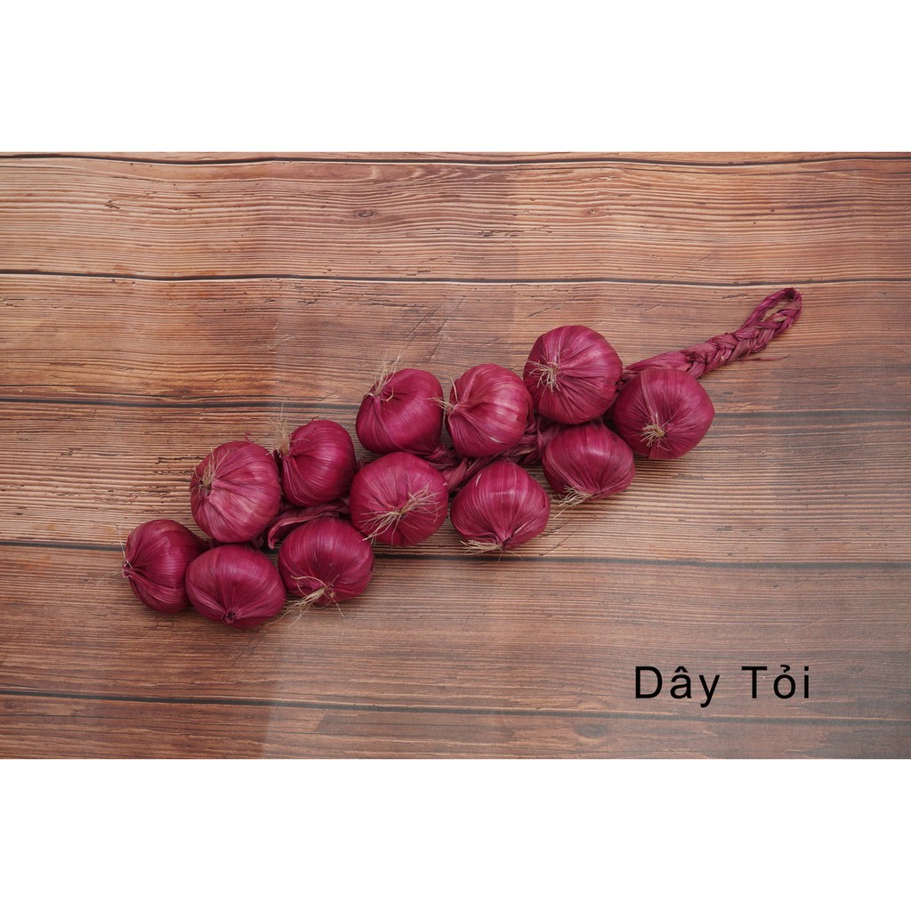 ✪ Dây tỏi, hành : Chiều dài dây 42cm , 1 dây có 12 củ . Đường kính củ 7cm . Củ chất liệu xốp
