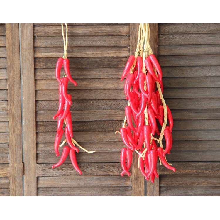 ✪ Dây ớt to : Chiều dài 72cm , 1 dây 12 quả . Chiều dài quả 11cm , rộng 2,5cm . Quả chất liệu xốp
