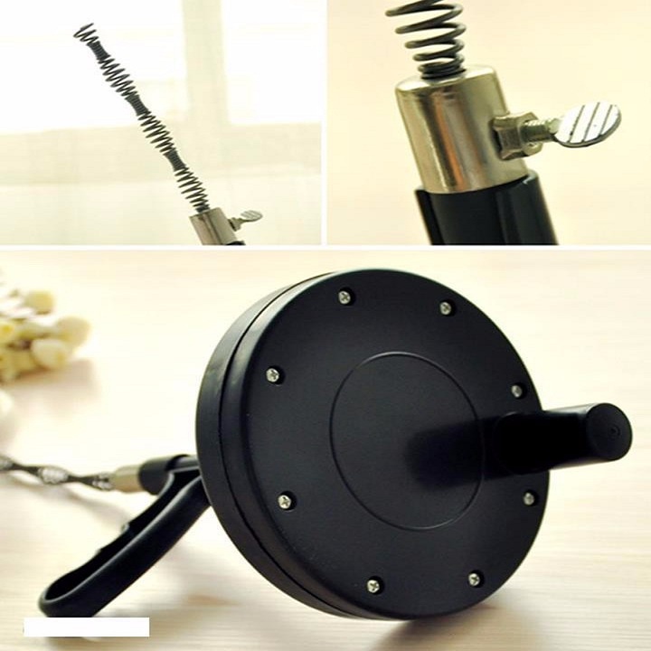 - Sản phẩm gồm đầu dây lò xo dài, kết hợp với tay quay có cơ chế hoạt động nhịp nhàng, linh hoạt. Đầu dây lò xo có thể kéo dài lên đến 5m, có thể uốn cong và tiến sâu vào các ngóc ngách của các loại ống thoát nước.