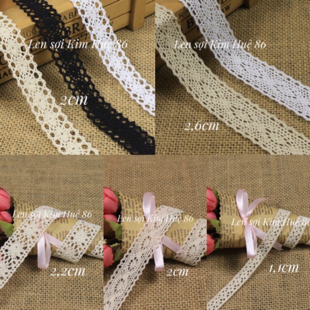 Dây ren mượt mà, bạn có thể dùng trang trí làm dây mũ, nơ.... làm các sản phẩm handmadeBản 2cm; 1,1cm; 2,2cm; 2,6cm