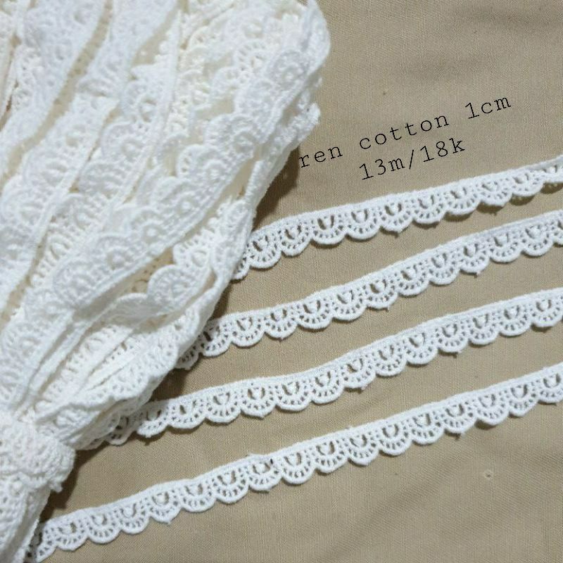 Sở thích & Sưu tầm > Dụng Cụ May Vá || Dây ren viền cotton 1cm trắng kemCòn hàng