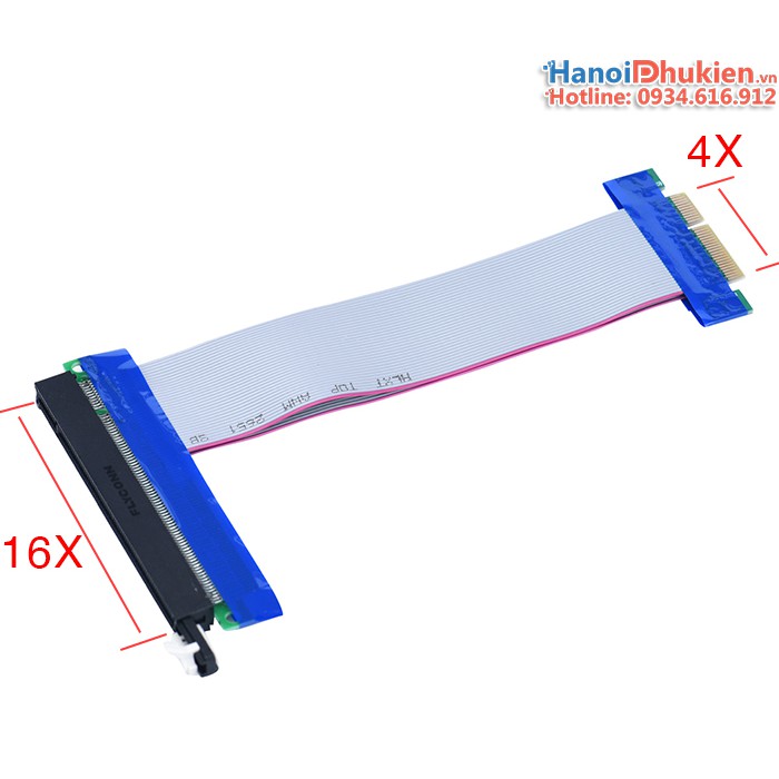 Cáp Riser PCI Express 4X to 16X. Chuyển đổi chuẩn PCI-E 4X sang PCI-E 16XDây Riser giúp bạn dễ dàng lắp đặt Card mạng (network card, BootROM), card RAID HDD, card VGA, card màn hình, card PCI-E dữ liệu khác...