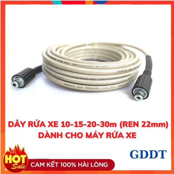 Dây rửa xe, 10, 15, 20, 30m, Dây rửa xe áp lực cao 2 đầu ren 22mm