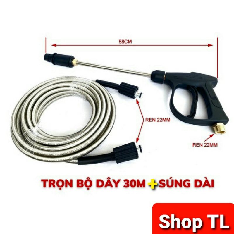 Bộ dây rửa xe 10, 15, 20, 30m Và súng xịt rửa xe áp lực cao (Kèm ống nối inox dài 36cm)