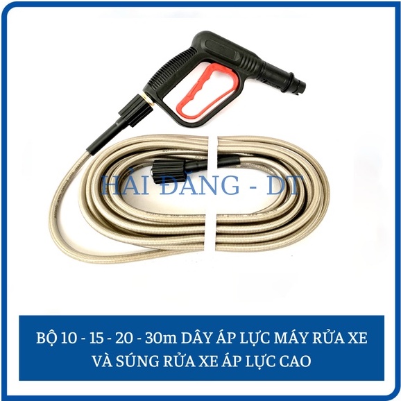Bộ dây rửa xe 10, 15, 20, 30m Và Súng rửa xe áp lực cao cò đỏ ren 22mm