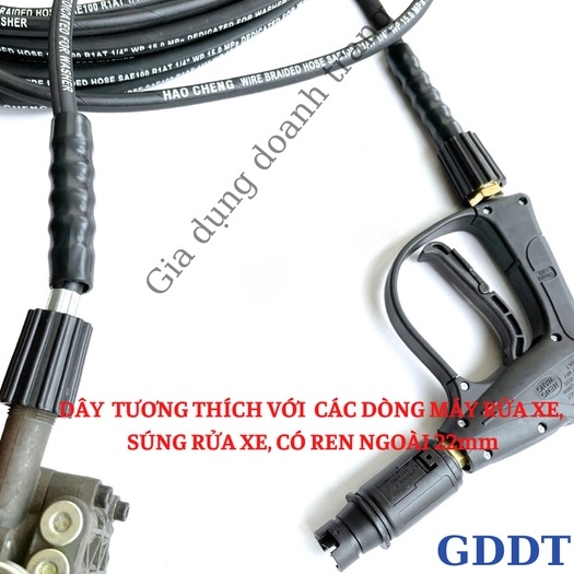 Nhà cửa & Đời sống > Dụng cụ & Thiết bị tiện ích > Dụng cụ > Máy rửa áp lực nước || Dây rửa xe 10, 15, 20m, Dây rửa xe áp lực cao lõi thép ren 22mm (loại tốt)Còn hàng