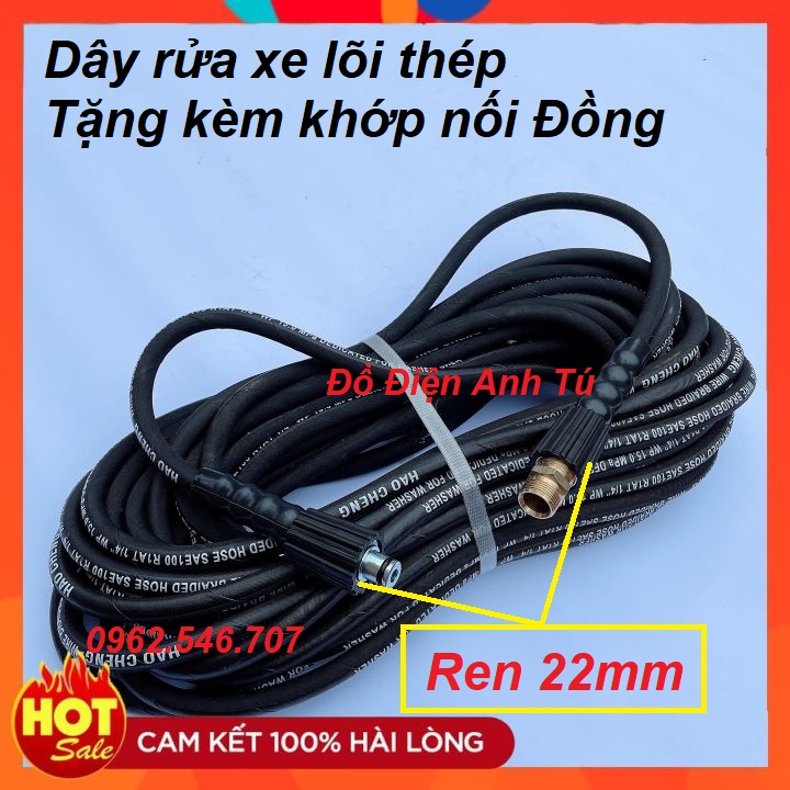 Dây rửa xe 10, 15, 20m Dây rửa xe áp lực cao lõi thép tặng kèm khớp đồng nối dây