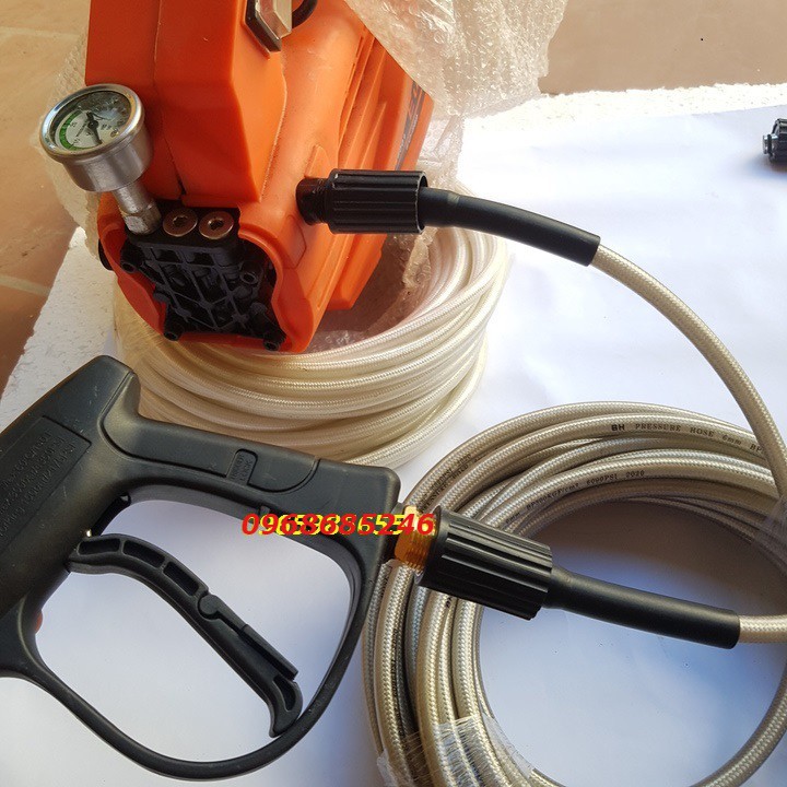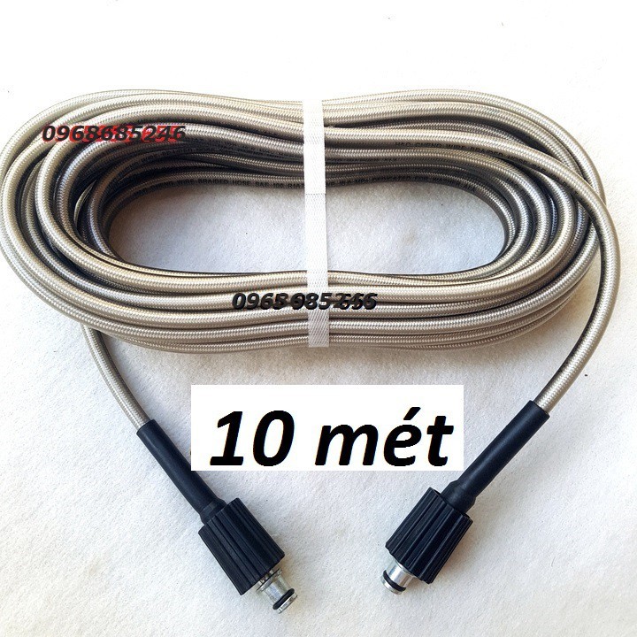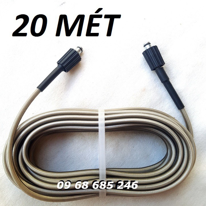 Dây cao áp bố vải dùng cho máy rửa xe.Ren trong 22, dùng cho 80% các loại máy rửa xe trên thị trường.