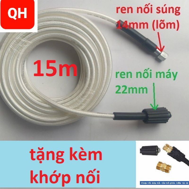 Dây Rửa Xe 10m,15m,20m Cho Máy bơm Xịt Rửa Áp Lực Cao ( Ren nối 22mm - 14mm)