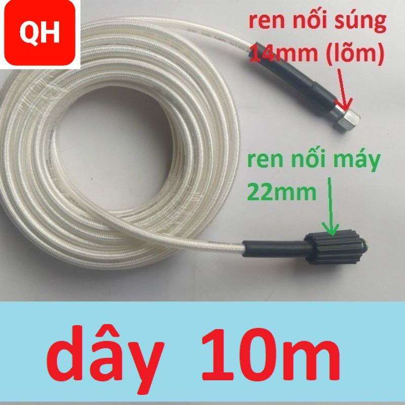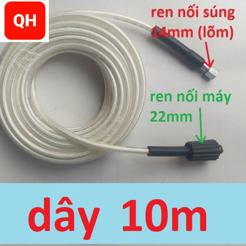 Công dụng: Ống dây máy rửa xe cho máy bơm xịt mini_ đầu ren trong 14mm lõm
