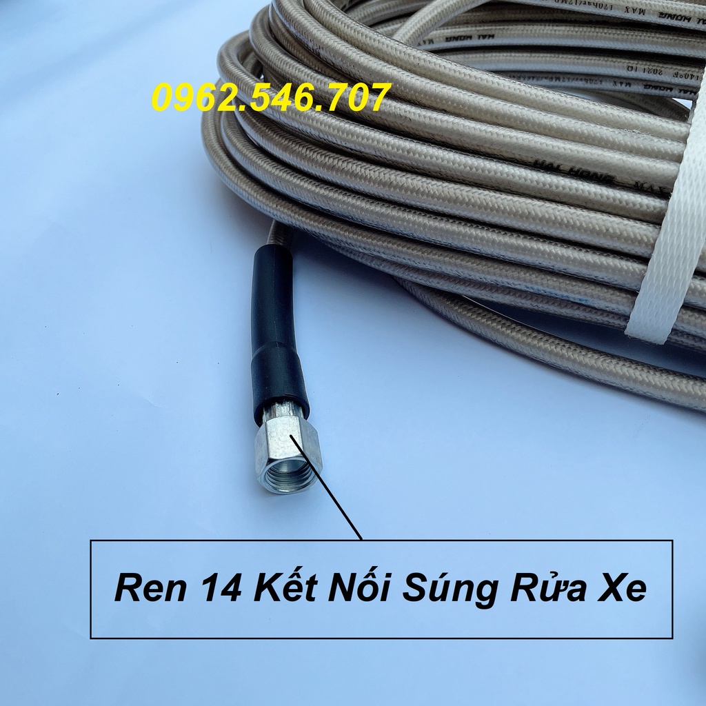 Dây Rửa Xe 10m,15m.20m Cho Máy Bơm Xịt Rửa Áp Lực Cao - Ren nối sung 14mm