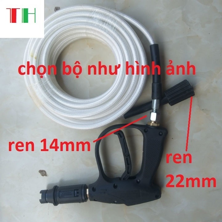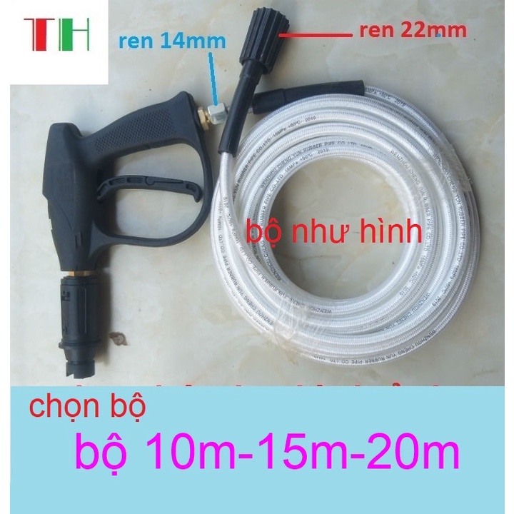 ống dây rửa xe dài 10m-15mét -20m , một đầu gen 14 mm và một đầu gien 22mm